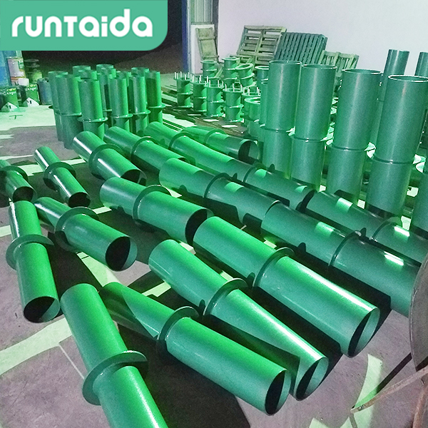2、翼環(huán)及鋼套管加工完成后,在其外壁均刷底漆一遍(底漆包括樟丹或冷底子油)。