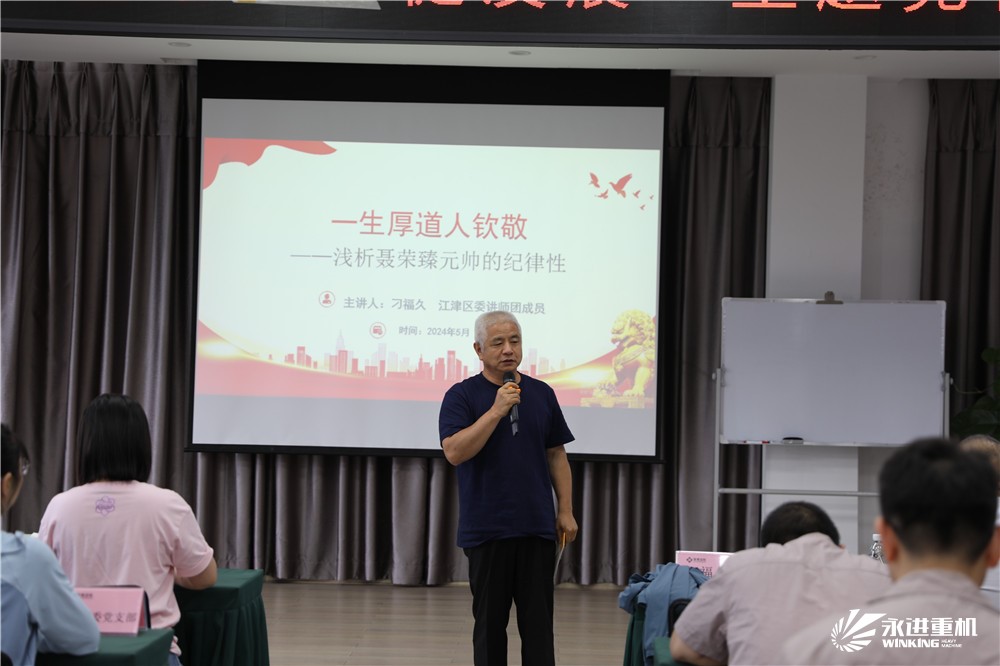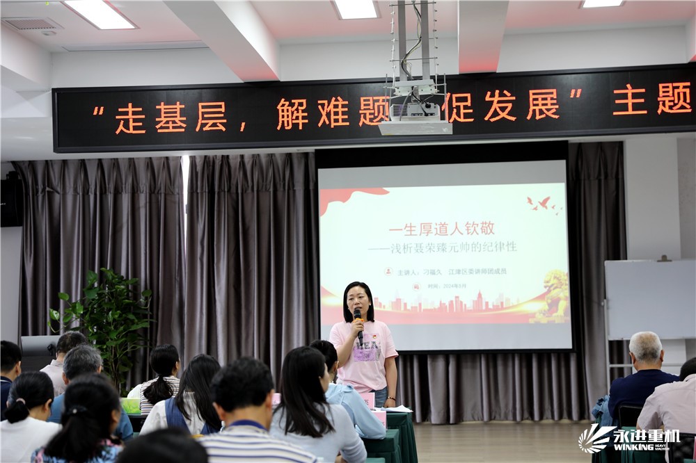 參觀后,在四樓會議室進(jìn)行了黨紀(jì)學(xué)習(xí)教育,學(xué)習(xí)了習(xí)近平總書記在新時代推動西部大開發(fā)座談會上的重要講話 ,《中國共產(chǎn)黨紀(jì)律處分條例》,觀看了警示教育片。隨后,區(qū)關(guān)工委思想道德教育團(tuán)成員、白沙鎮(zhèn)二級巡視員刁福久以“一生厚道人欽佩-淺析聶榮臻元帥的紀(jì)律性”為題,為全體黨員干部上了一堂生動的紀(jì)律黨課。他通過生動的講述,配以大量史料佐證,真實地再現(xiàn)了聶榮臻元帥在法國勤工儉學(xué)、中國革命實踐、國防科技發(fā)展等不同時期如何踐行初心和使命,嚴(yán)守黨的紀(jì)律,遵守黨的規(guī)定,清正廉潔,嚴(yán)格家風(fēng)家訓(xùn),為黨和人民的事業(yè)奮斗一生的傳奇經(jīng)歷。宣講中,刁福久飽含深情,黨員同志們凝神靜聽,現(xiàn)場不時爆發(fā)出熱烈掌聲。